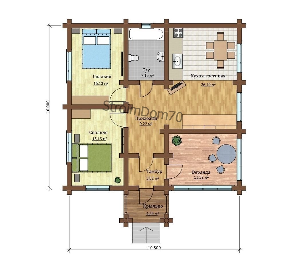 • Оцилиндрованного бревна